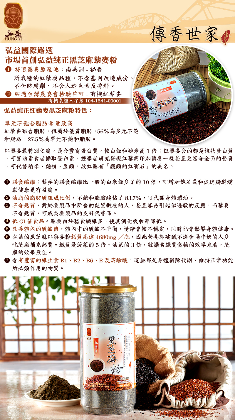 弘益傳香世家-紅藜黑芝麻粉/4瓶