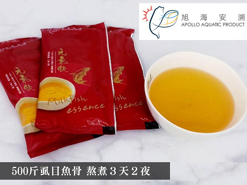 虱目魚精元氣飲萃取虱目魚精華,溫潤順口,鋁箔包裝加熱方便,浸泡熱水後即可飲用,適合術後產後哺乳期間飲用,也適成長發育中的小朋友最好的天然補充飲品。