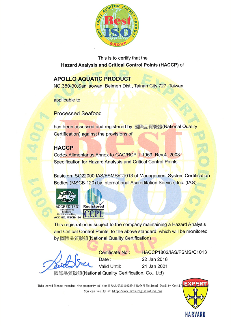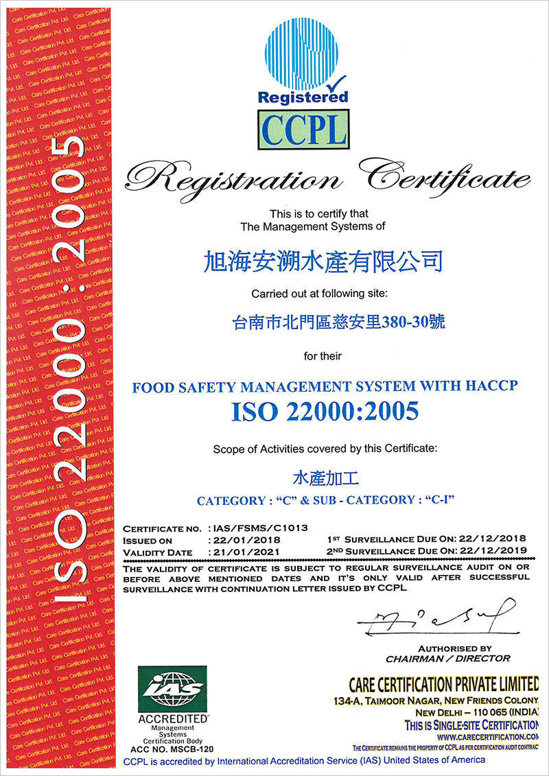 符合 ISO 22000、HACCP 水產加工品質驗證