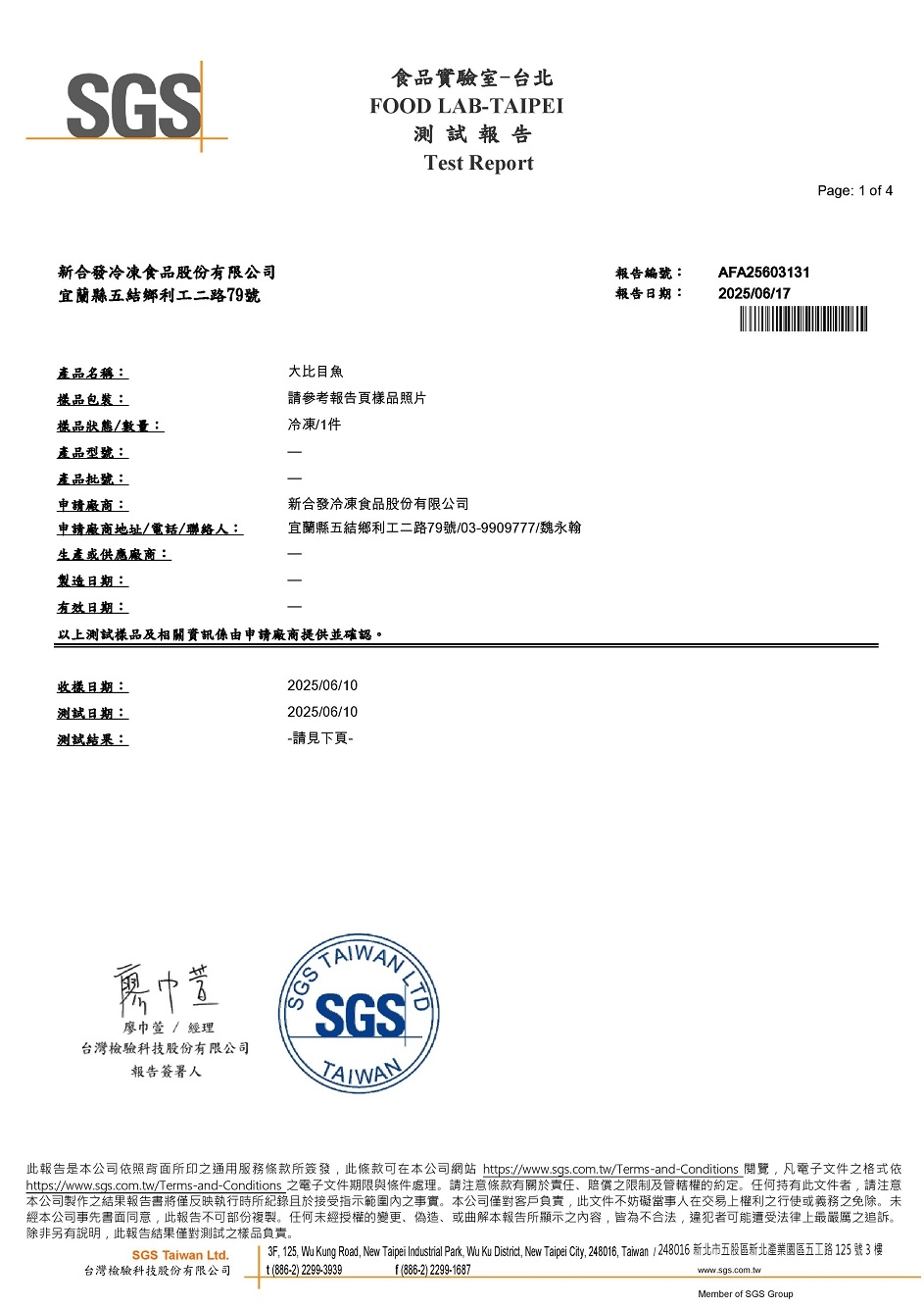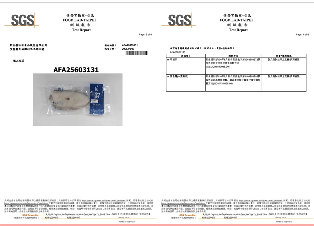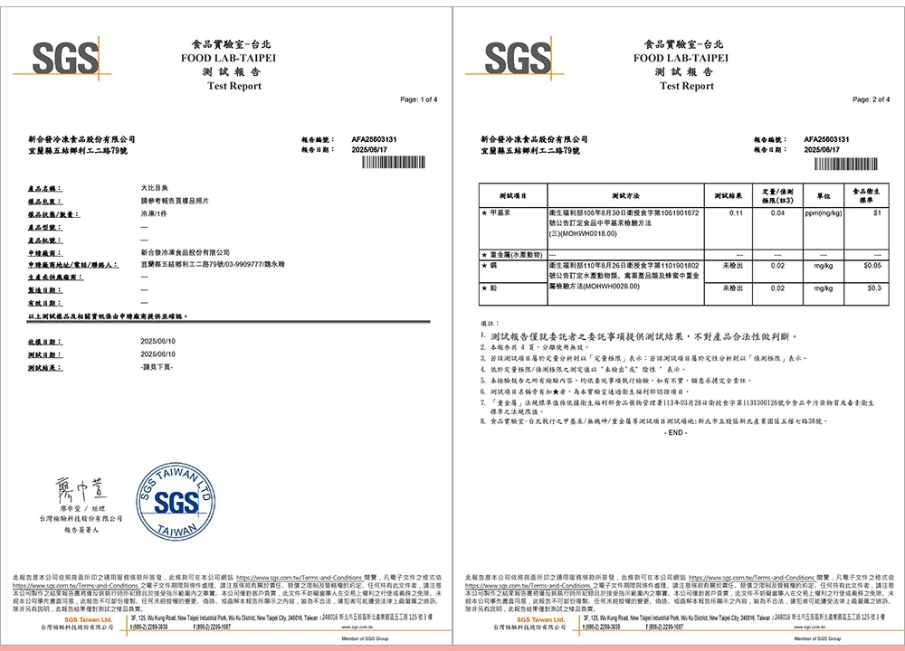 安全證明:SGS 水產品重金屬及甲機汞檢驗
