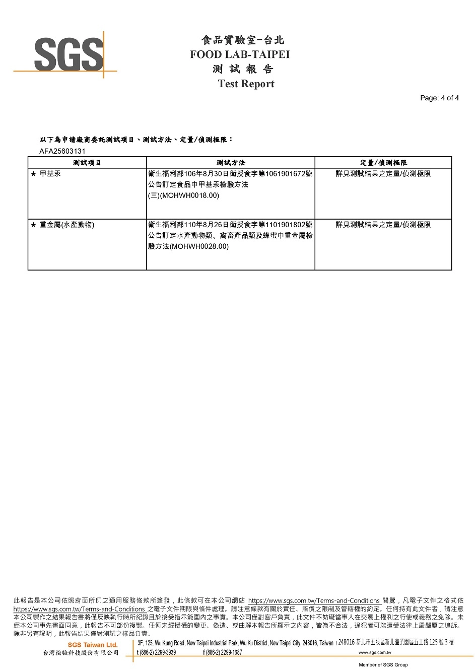 ❷ SGS檢驗合格 (重金屬、甲基汞)