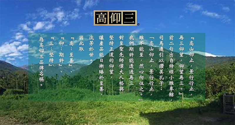 有機柑橘純醬、汁系列:使用有機海梨柑、桶柑、甜橙與茂谷柑,整顆含果肉、皮、核、絡,以先進乳化技術極細微化,不再添加其他任何食材,作成有機純醬;高仰三的用心,再次讓傳統智慧與現代科技跳出曼妙的華爾滋。百分之百無添加,完全未加水稀釋,也未添加任何糖類。