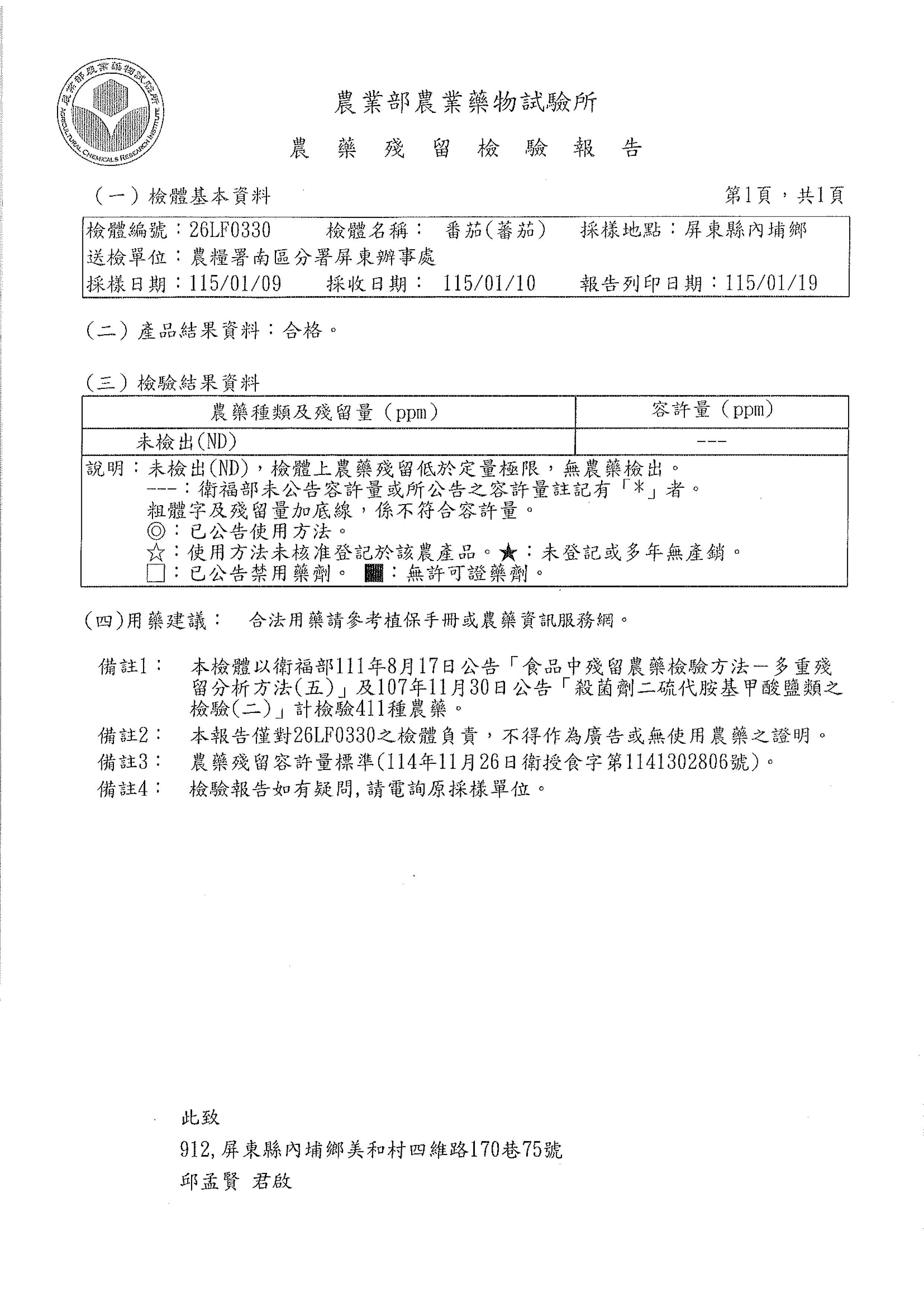 無農藥檢驗合格
