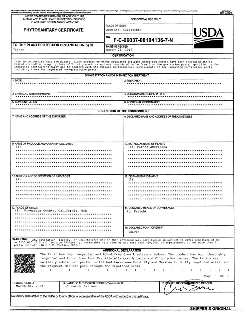 安全證明:進口檢疫證