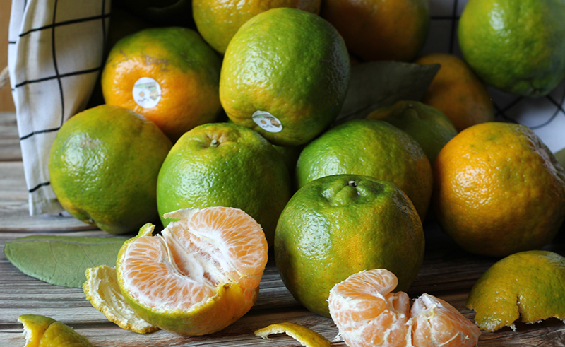 青皮椪柑是台南最早熟的柑橘果實,產期短、氣候要求高,庄腳阿胖僅在秋季現採現送,好物市集限定販售。