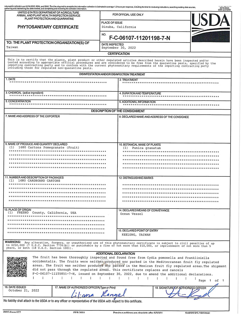 安全證明:進口檢疫證明