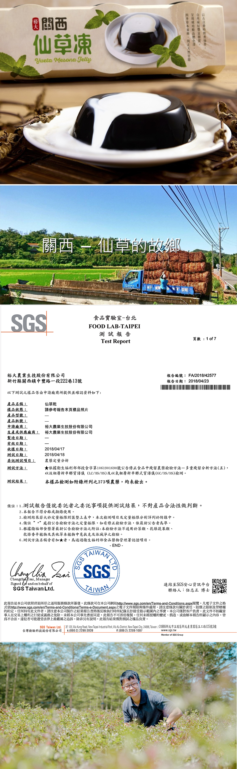 大仙草通過 SGS 農藥檢測,經高溫蒸煮鍋熬製成仙草原汁,一貫化機器設備製造,乾淨衛生又健康,不添加防腐劑、不含人工色素的天然古早味甜品;仙草凍以古法費時熬煮仙草,加入蒟蒻與仙草原汁自然凝結豐富膠質,呈現琥珀般晶體色澤,四季草本養顏,純正天然甘甜,是不可錯過的好滋味。