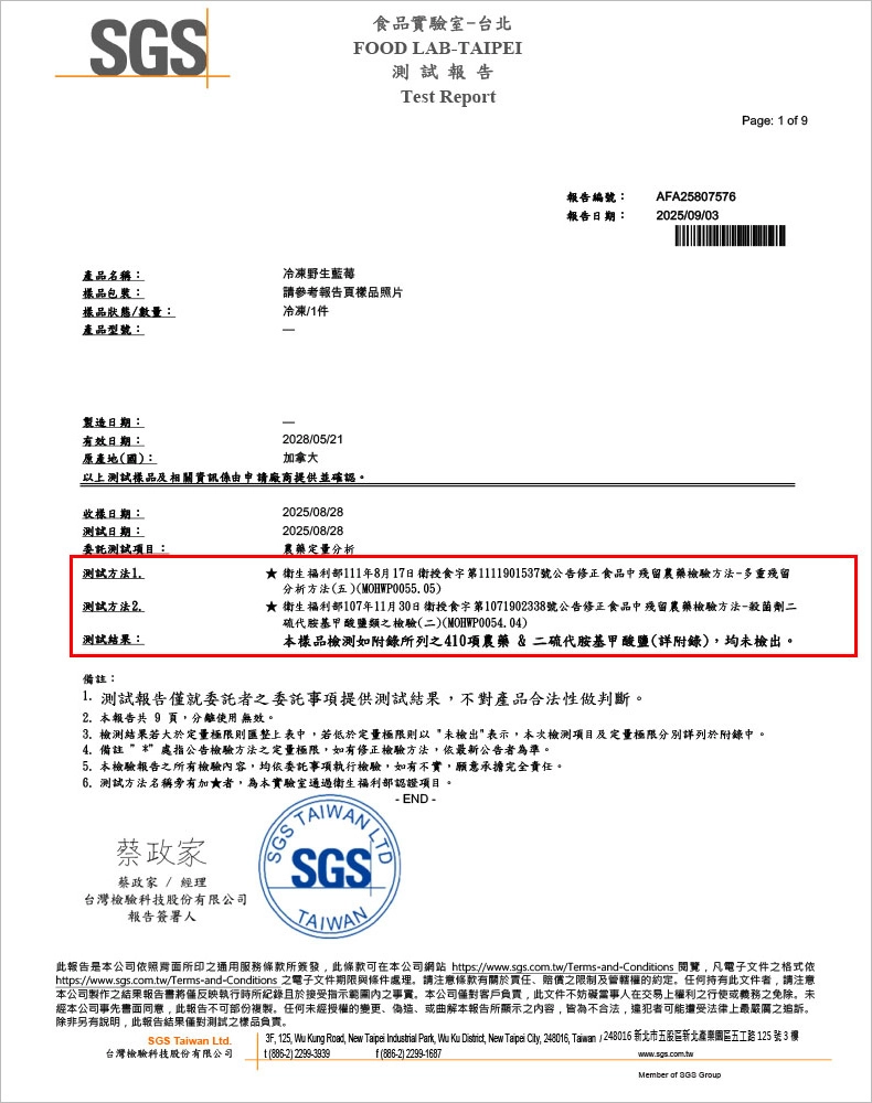 SGS-A肝病毒檢驗通過 無農殘檢驗(產地:加拿大)