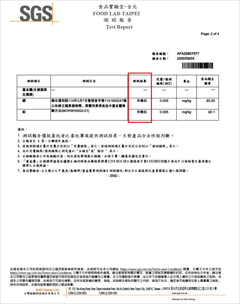 SGS-A肝病毒檢驗通過 無農殘檢驗(產地:美國)