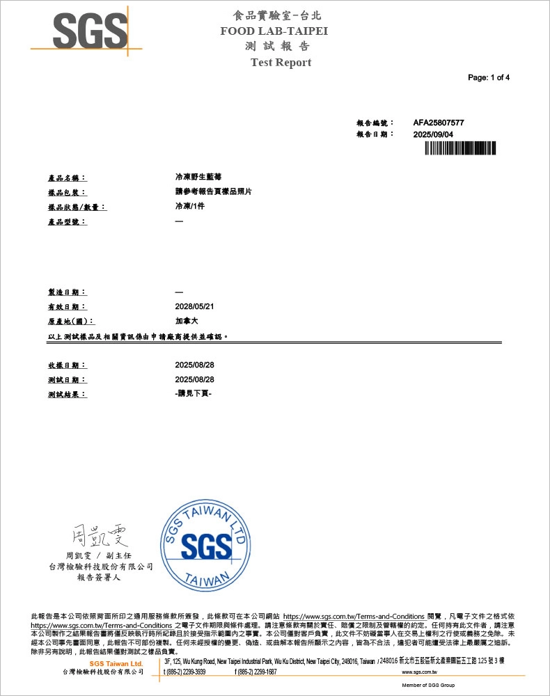 ❶ 急凍莓果,通過A肝莓、 SGS 無農藥殘留檢驗合格,搭配 IQF 急速冷凍技術保存。不必清洗、開了就吃!