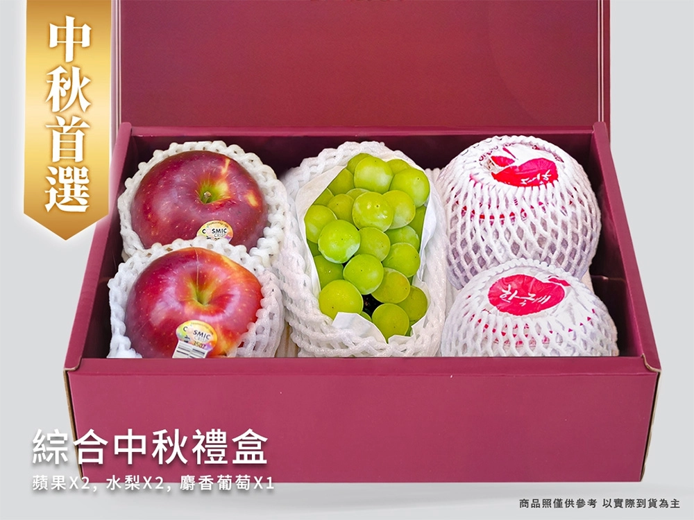 【預購/送禮首選】馥果FruitGO-中秋綜合禮盒 (蘋果 X2、韓梨 X2、麝香葡萄 X1)