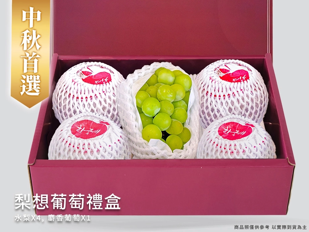 中秋送禮首選,精選麝香葡萄與新高梨組合,一盒兼具高雅體面與實惠美味,中秋佳節最「梨」想的好禮!