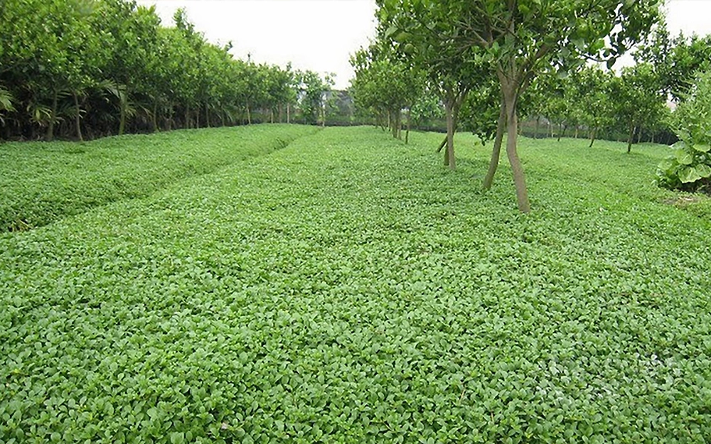 為了降低裂果風險,羅大哥在果園中種植了從國外引進的香草植被心葉水薄荷;這種植物能為土壤保持適度濕度、減少水分瞬間吸收的情況,同時還具有天然除蟲、抑制雜草的效果,讓果園的生態更平衡、環境更健康。