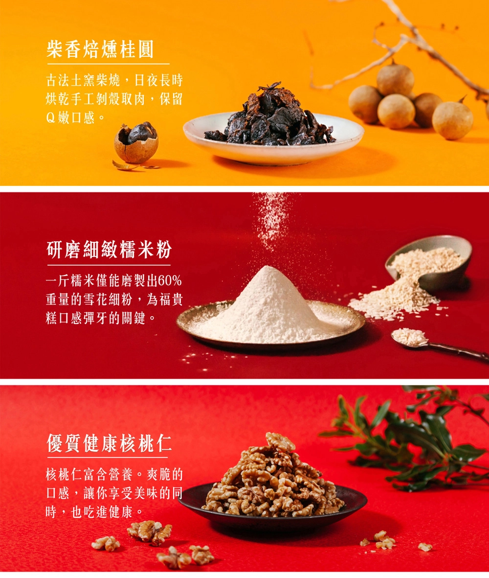 糯米粉、麥芽、核桃、桂圓、砂糖、海藻糖 (純素可食)