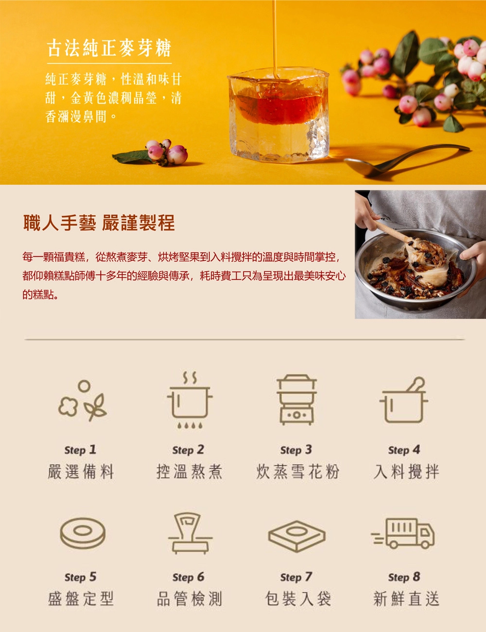 ❷ 福貴糕為當天新鮮製作,採預購制。下訂後預計3-5個工作天陸續出貨;恕無法指定到貨日期,週日 、週一宅配無法到貨,敬請見諒。