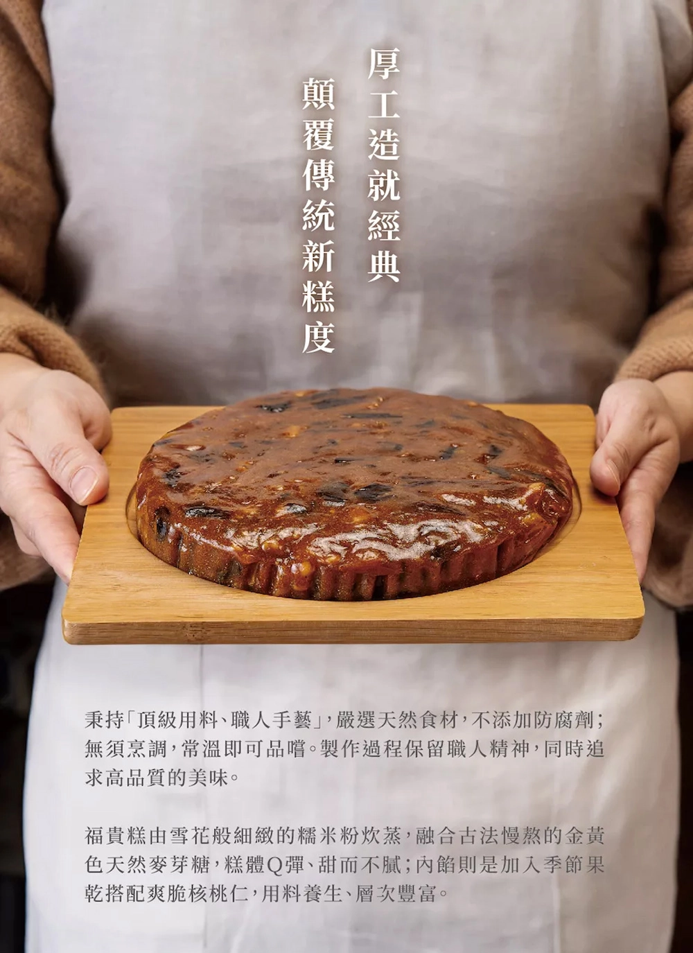 ❷ 福貴糕為當天新鮮製作,採預購制。下訂後預計3-5個工作天陸續出貨;恕無法指定到貨日期,週日 、週一宅配無法到貨,敬請見諒。