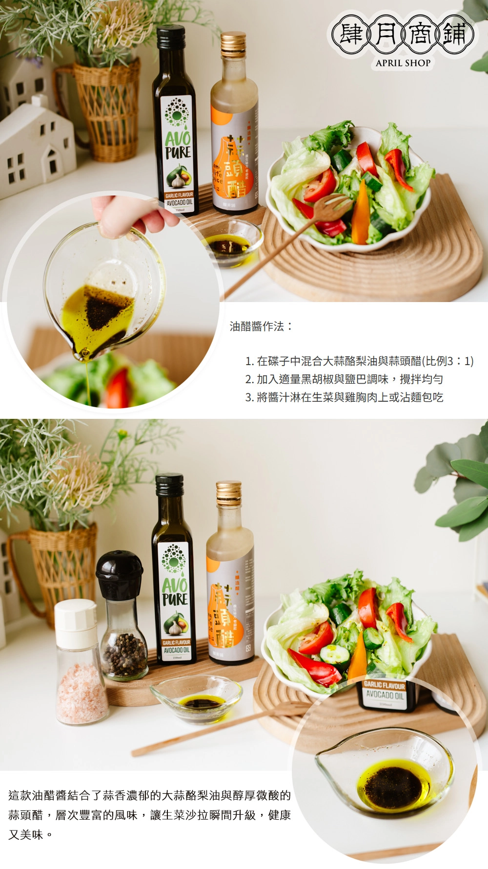 肆月商鋪-經典油醋醬 (蒜味酪梨油+蒜頭醋)/禮盒