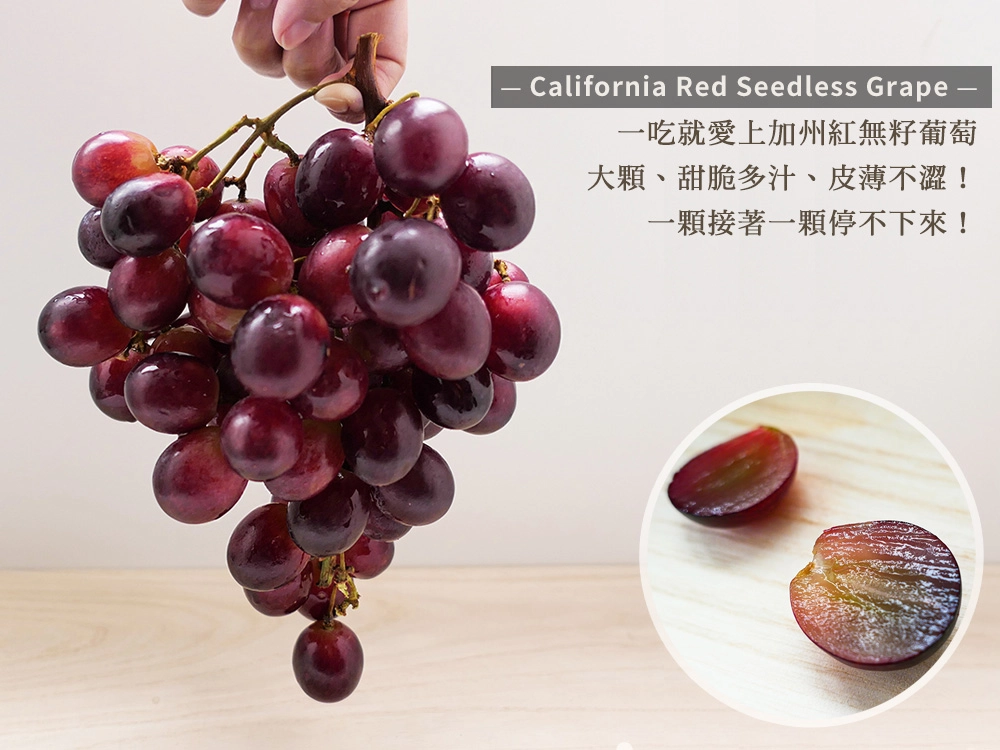 紅無籽葡萄好吃的秘密就在於高甜度,自然甜味濃郁,甜度約 17 度以上;果粒飽滿大顆、紮實多汁,每一口都讓人超滿足。