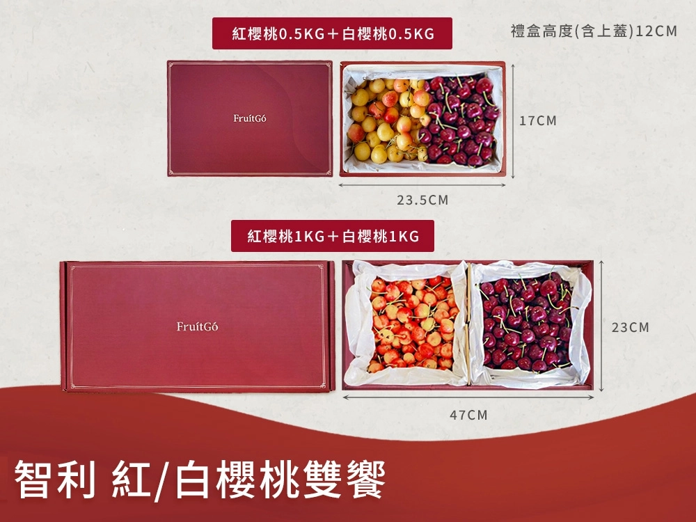 馥果FruitGO-智利空運紅、白櫻桃雙饗 (4J) (32~34mm)/禮盒