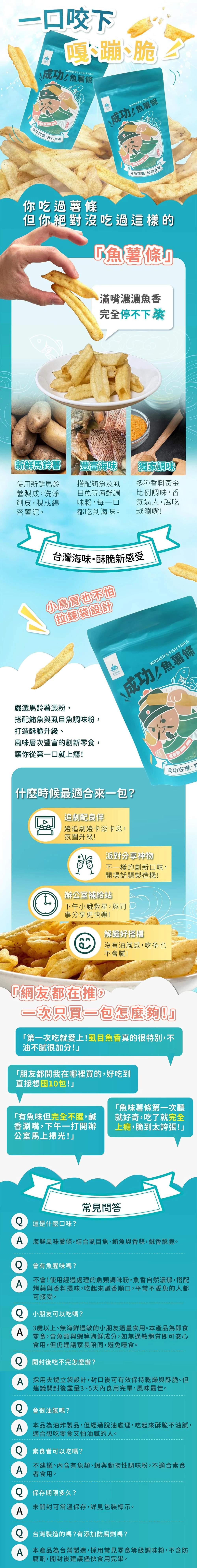 嚴選台灣代表魚虱目魚,融合鮪魚的鮐美風味,打造前所未有的創新海味薯條;外酥內香、鮮味滿點,不論追劇、辦公或好友聚會,都是讓人一口接一口的解饞首選。