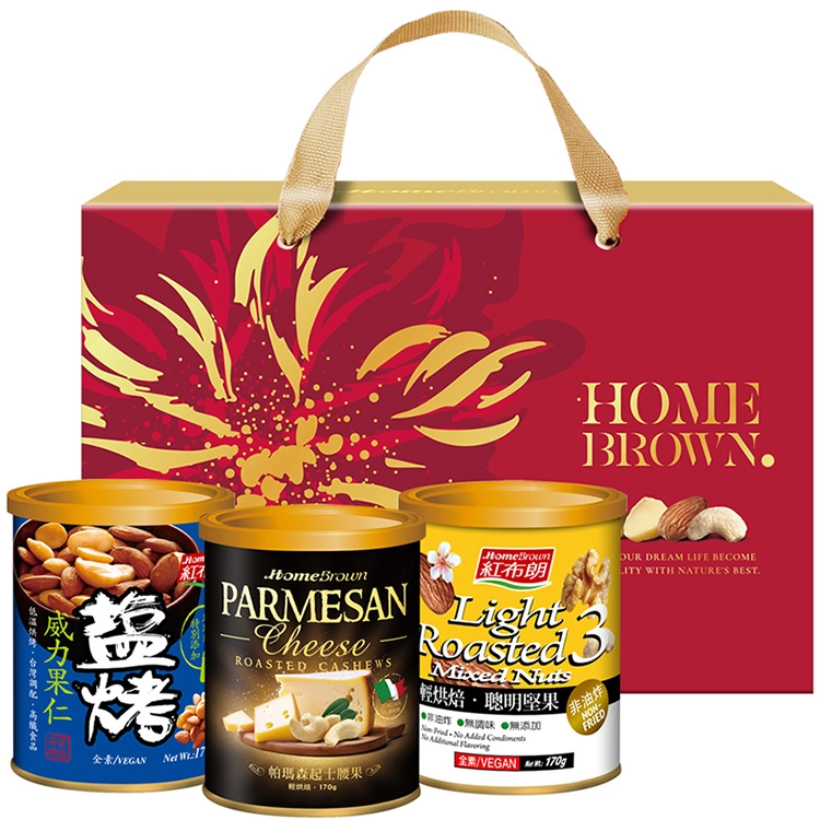 紅布朗-福添喜氣堅果禮盒 (起士腰果+鹽烤威力+聰明堅果)