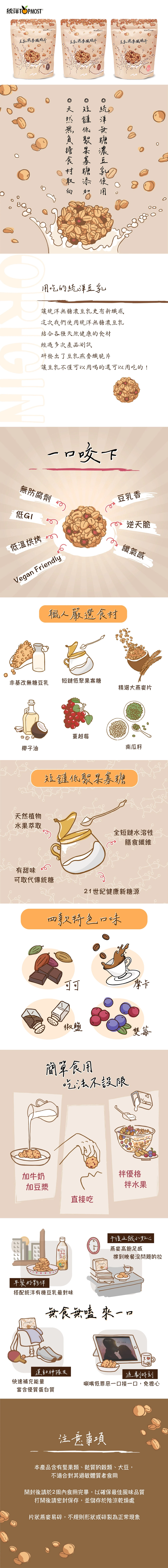 統洋豆漿-豆乳燕麥纖脆片 (摩卡、可可、雙莓)/9包
