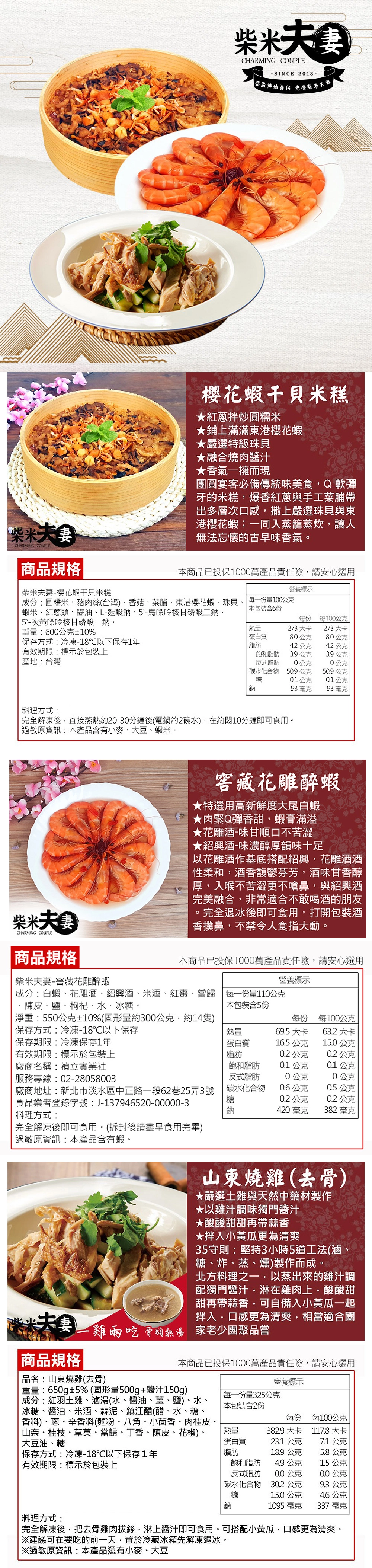 柴米夫妻-大吉大利 (櫻花蝦干貝米糕+窖藏花雕醉蝦+山東燒雞)/3菜組