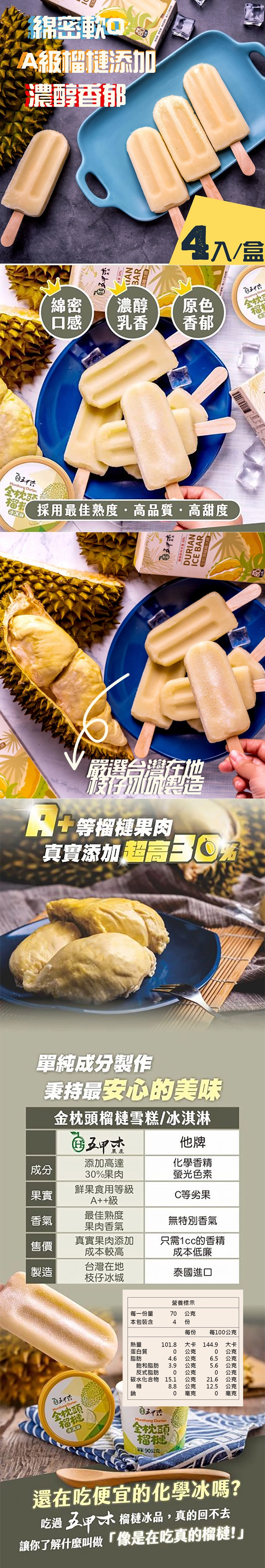 五甲木-金枕頭榴槤雪糕 ( 4入)/4盒