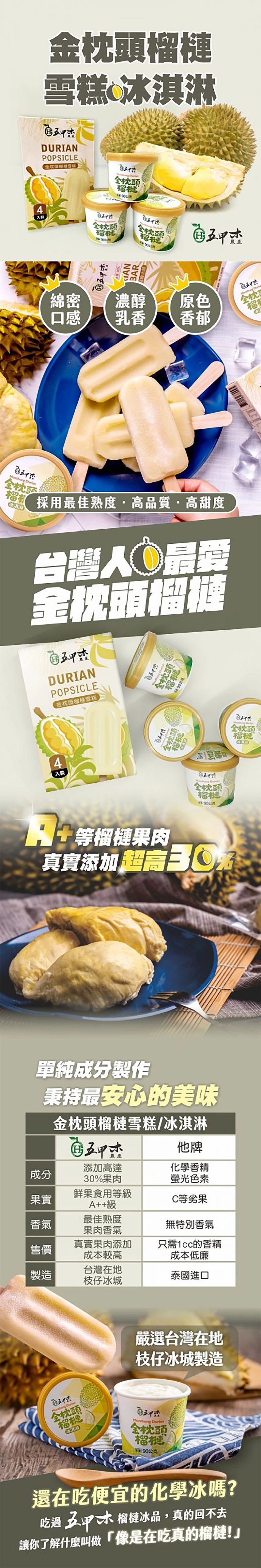 五甲木-金枕頭榴槤冰品雙享組 (雪糕 1盒+冰淇淋 6杯)