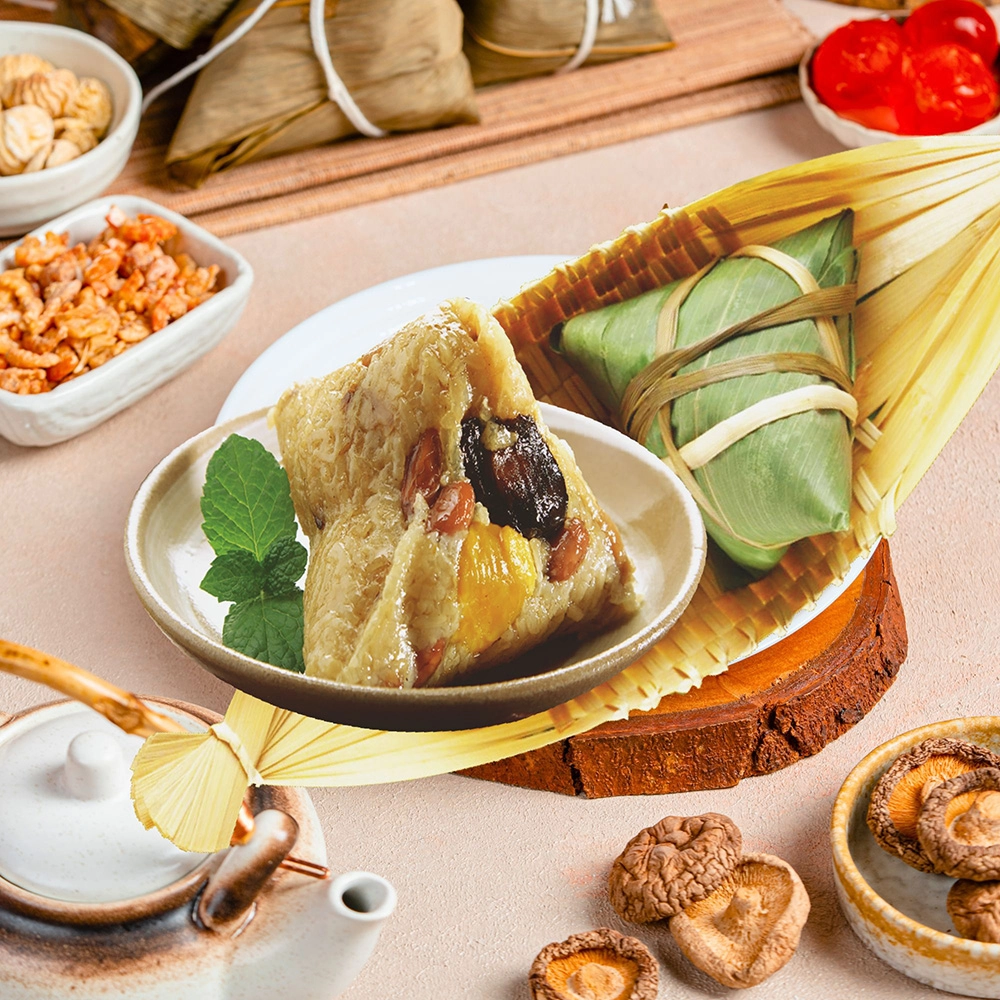 麻香猴菇素粽:健康素粽,嚴選猴頭菇等豐富食材,口感紮實、風味香醇。高蛋白低脂、營養滿分,搭配多樣配料更顯層次。限量供應,喜愛養生美味者把握機會。