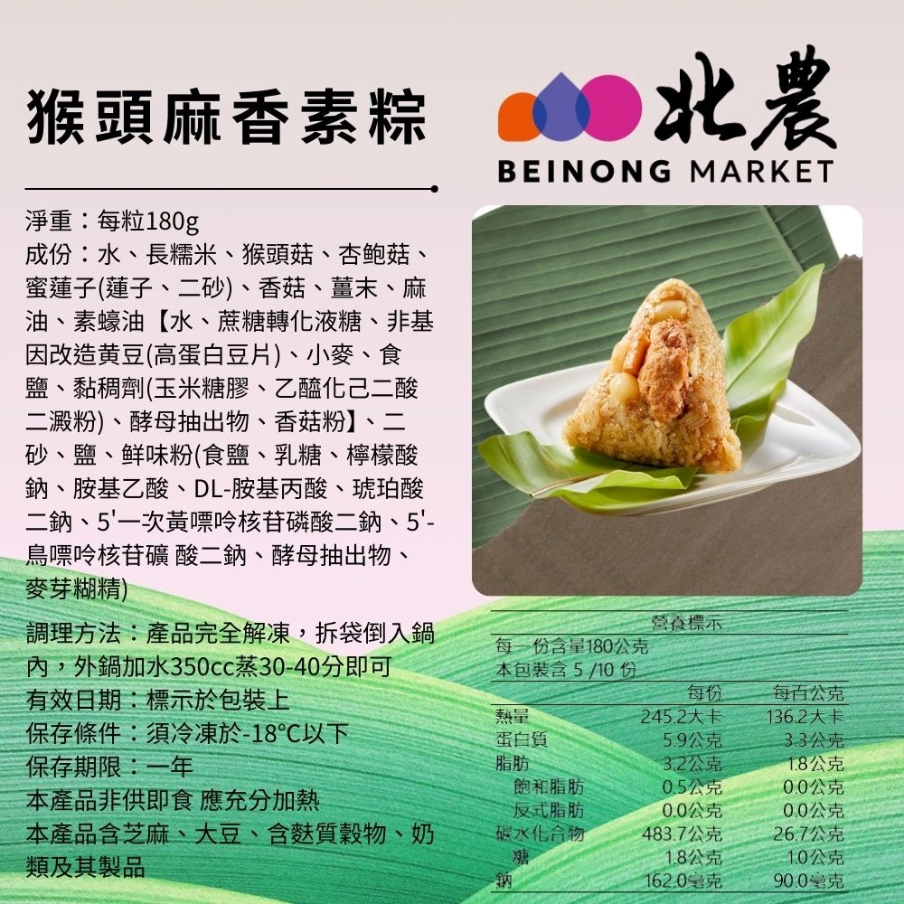 北農嚴選-古早味粽子+麻香猴菇素粽 (10粒) /2盒