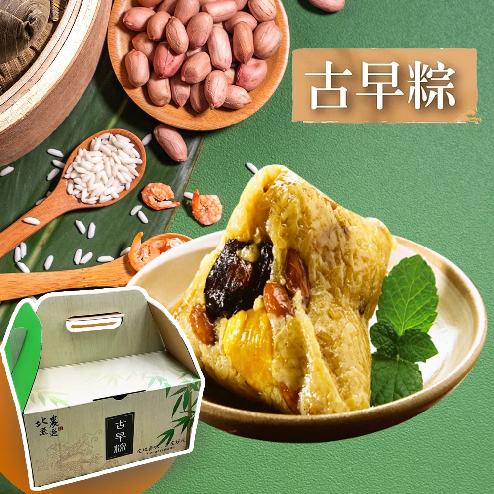 古早味粽:古早味北部粽,嚴選長糯米搭配豬五花、栗子、香菇等山珍海味,粽香濃郁、口感紮實。遵循傳統工法製作,經典風味重現,端午必吃,輕鬆享受道地節慶美味。