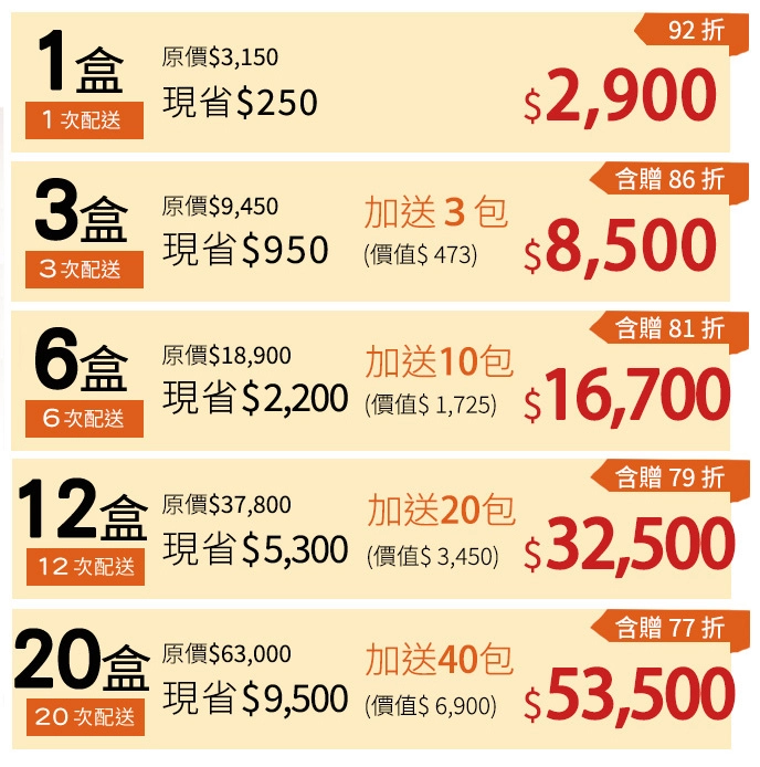 3盒以上: 訂購並完成訂單確認者,將於出貨前進行電話聯繫確認,出貨時間約為 7 個工作天左右寄出。