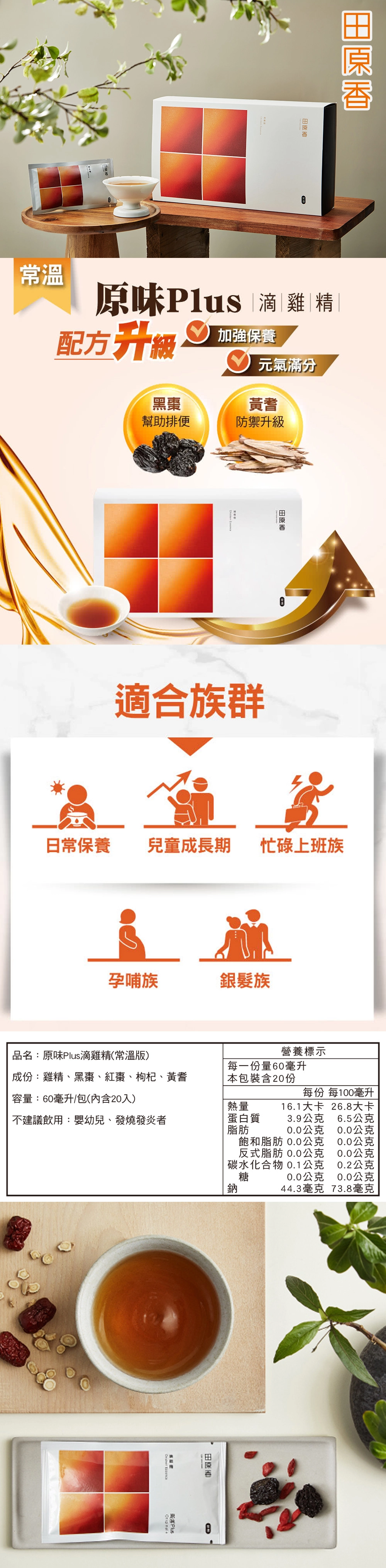 【4/10開賣】田原香-原味Plus滴雞精 (常溫版)↘77折起
