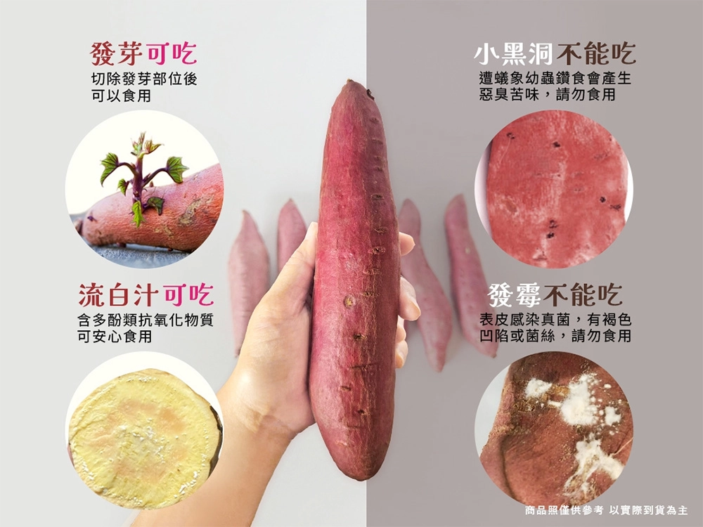 收到後請打開紙箱,讓地瓜通風,置於陰涼乾燥處。新鮮蔬果請提早享用。